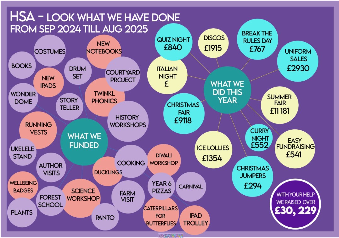As well as raising money, the HSA creates a fun environment to meet other new parents, foster hidden talents and maybe learn a few more! There’s no obligation to do anything but any help is greatly appreciated.